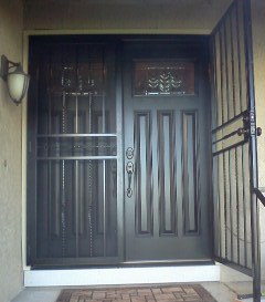 Gain an extra level of security by installing these wrought iron screen doors complete with lock knobs and deadbolts. Allow yourself to have an open entry door for air circulation or answering your door for visitors while still keeping any unwanted visitors from just walking in. Single security doors are available in different styles, colors, and common sizes in stock. Double security doors can be ordered to fit and installed giving you the same extra level of security for double door entry points.